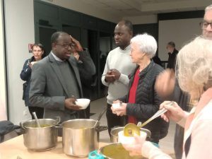 Jean-Yves Six, a présenté le projet de partenariat entre les lycées agricoles de Bretagne et l’association ITECA (Institut Technologique et Agricole) et nous avons partagé ensemble un repas solidaire (soupe et pomme) !